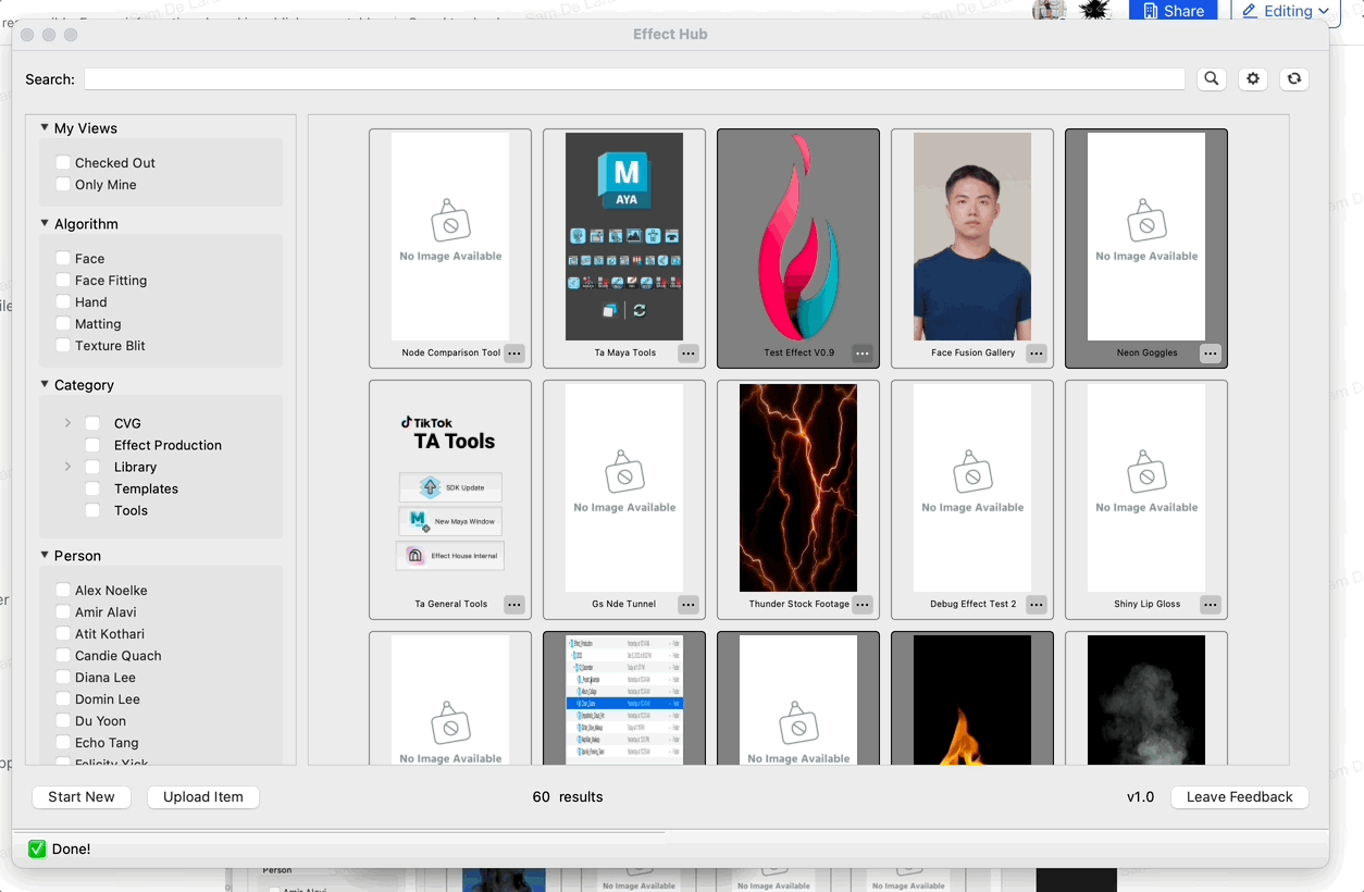 Solution: Collaborating with a backend engineer, I spearheaded the development of Effect Hub to address these challenges. Initially, I focused on front-end development using Python (PySide2), Bash, and Shell scripting to create a downloadable application tailored to our team's needs. As the project progressed, I took on the role of the sole developer, maintaining and enhancing the tool with JavaScript and SQL. I also served as the primary point of communication between cross-functional teams, ensuring a smooth onboarding process and encouraging daily use of the app. Effect Hub enables users to browse, manage server files, and maintain robust version control (Perforce).